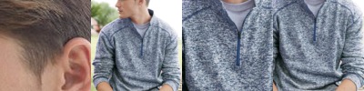 - 1x1 ribbed, lay-flat collar