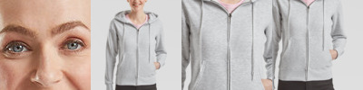 Double lined hood. Drawstring at neckline. Double stitched pouched pocket, neck and armhole. Double stitched sleeve and waist rib. 1x1 athletic rib knit with Lycra®. Quarter-turned body to eliminate centre crease
