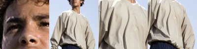 2.3cm knit collar. Shoulder to shoulder taping. Fine gauge knit. Front coverseaming on collar. Tubular construction for shape retention.