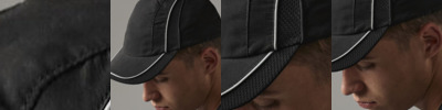 Mesh ventilation panels. 100 Polyester Coolmax® fabric sweatband. Enhanced visibility reflective accents. Rip-Strip™ size adjuster. Size One Size