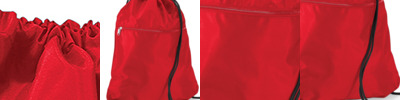 TearAway label for ease of rebranding. Dual-purpose grab handle/ hanging loops. Drawcord closure. Cotton webbing shoulder straps. Can be carried by hand or backpack style.