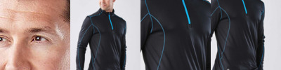 4.1 oz./yd² / 139 gsm, 100% polyester piqué with moisture-wicking, anti-microbial and UV protection performanc; Matching flat-knit collar; Spandex enhanced rib knit cuffs; Heat-sealed label; Side slits;