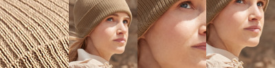 67% recycled polyester/21% nylon/10% acrylic/2% elastane. Luxury soft touch yarn. Double knit. Engineered crown. Cuffed design. Tear out label.