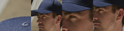 100% organic cotton twill. 5 panel. Contrast sandwich peak and stitched ventilation eyelets. Pre-curved peak. Self fabric strap with contrast tri-glide buckle. Tear out label.
