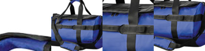 100% PVC. Heavy duty reinforced waterproof fabric. Can be used as a holdall or backpack. Ergonomic adjustable shoulder straps. Reinforced four point carry handles. Exterior gear loops. Compression straps. Large main zip compartment. External zip access boot pocket. ID sleeve. Large internal mesh zip pocket and key clip. Capacity 70 litres.