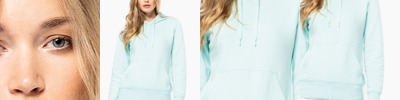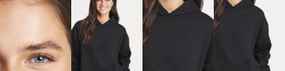 80% ringspun cotton/20% polyester.* Cotton faced fabric. Brushed back fleece. Drop shoulder style. Relaxed fit. Double fabric hood with no drawcord. No front pocket. Slightly cropped length. Ribbed cuffs and hem with side vents. Twin needle stitching. Tear out label.