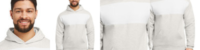 100% polyester. Brushed back fleece. Drop shoulder style. Three panel hood. Crossover neck detail. Contrast shoulder, upperarm and side panels (black and navy are self colour). Two front zip pockets. Ribbed cuffs and hem. Tear out label.