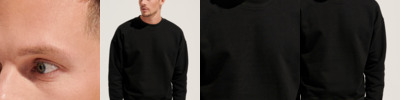 Set-in sleeves. 2x1 rib at collar, sleeve cuffs and bottom hem. Double-needle topstitches on all seams. Inside herringbone back neck tape. Self-fabric half moon at the back neck. Slight shading on the seams to give a washed look. Garment-dyed product: each garment may vary in appearance and colour may bleed (follow our care label). Carefully read printing recommendations.