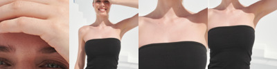 93% cotton/7% elastane. Single jersey. Strapless. Double layer front. Silicone grip tape on front. Twin needle hem. Tag free.