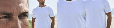 100% organic ringspun combed cotton. Double pre-shrunk. Enzyme washed. Silicone treatment. Regular fit. Ribbed collar with elastane. Taped neck and shoulders. Side seams. Twin needle sleeves and hem. Tag free.