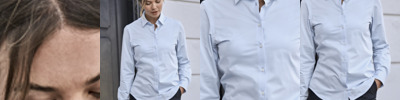 91% cotton/9% elastane. Single jersey knit. Easy care fabric. Four-way stretch. Moisture wicking and quick drying. Pre-shrunk. Shaped fit. Wide spread collar. Pearlised buttons. Back yoke. Single button cuff with button on cuff gauntlet. Modern shaped cuffs. Curved hem.