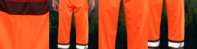 100% polyurethane. Recycled polyester lining. Soft and supple feel fabric. Conforms to EN ISO 20471: 2013 + A1: 2016 class 2, EN343: class 3:1. RIS-3279-TOM. Waterproof 5000mm with welded seams. Breathable 1000g and windproof. Elasticated waistband. Contrast mesh front and back panels. Hanging loop. Two reflective printed bands around the lower legs. Open leg ends with stud adjusters. Tag free. Co-ordinates with RS507.